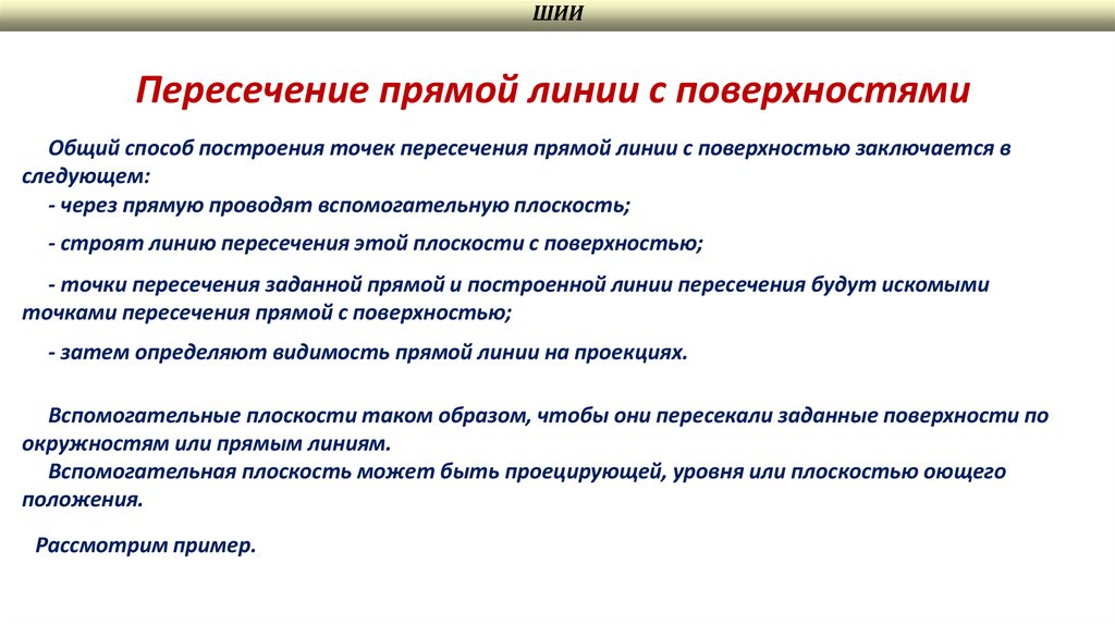 Общий способ построения точек пересечения прямой линии с поверхностью заключается в
