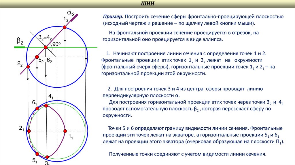проводят вспомогательную плоскость β2 , которая пересекает сферу по