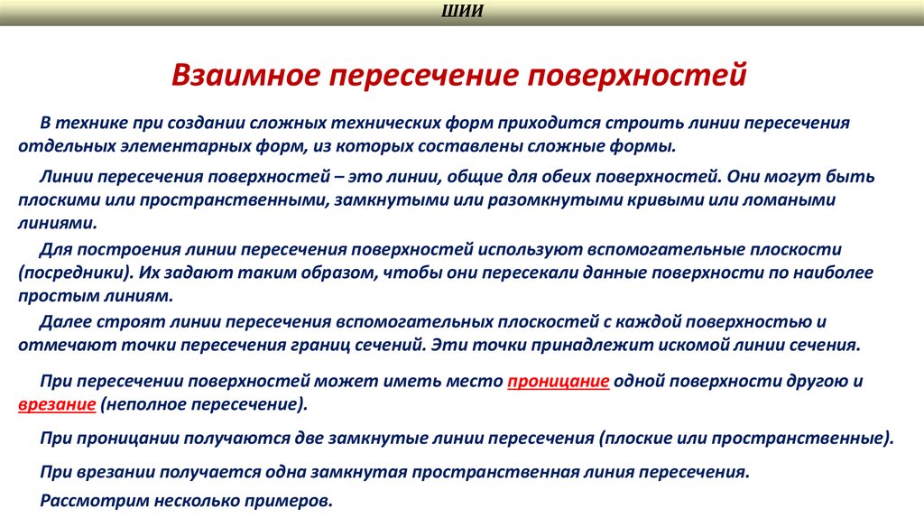 При пересечении поверхностей может иметь место проницание одной поверхности другою и