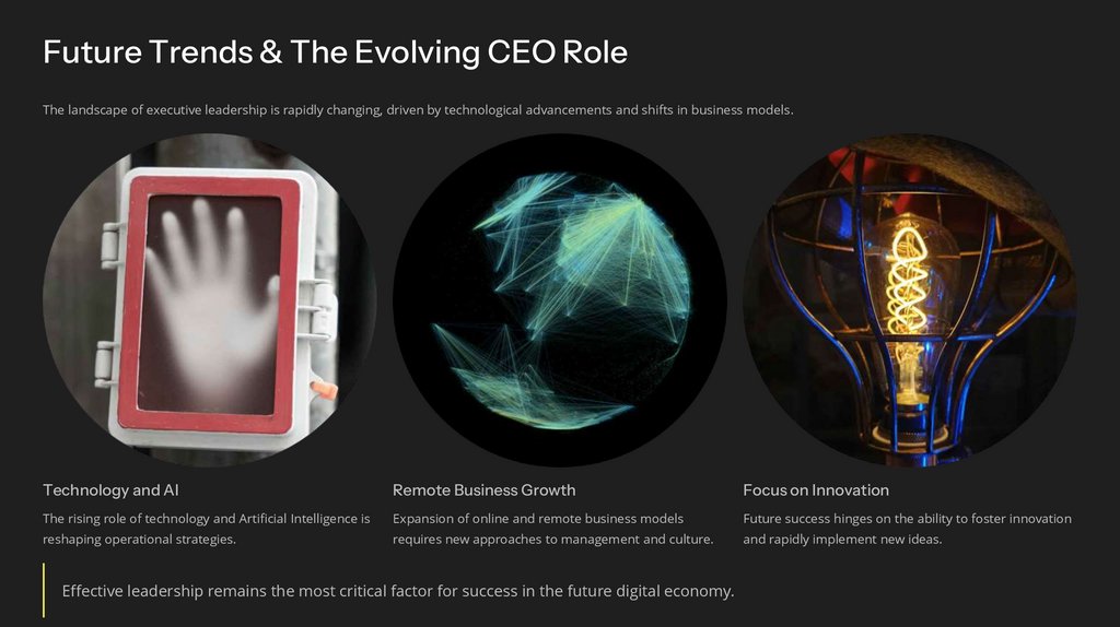 Future Trends & The Evolving CEO RoleThe landscape of executive leadership is rapidly changing, driven by technological advancements and shifts in business models.