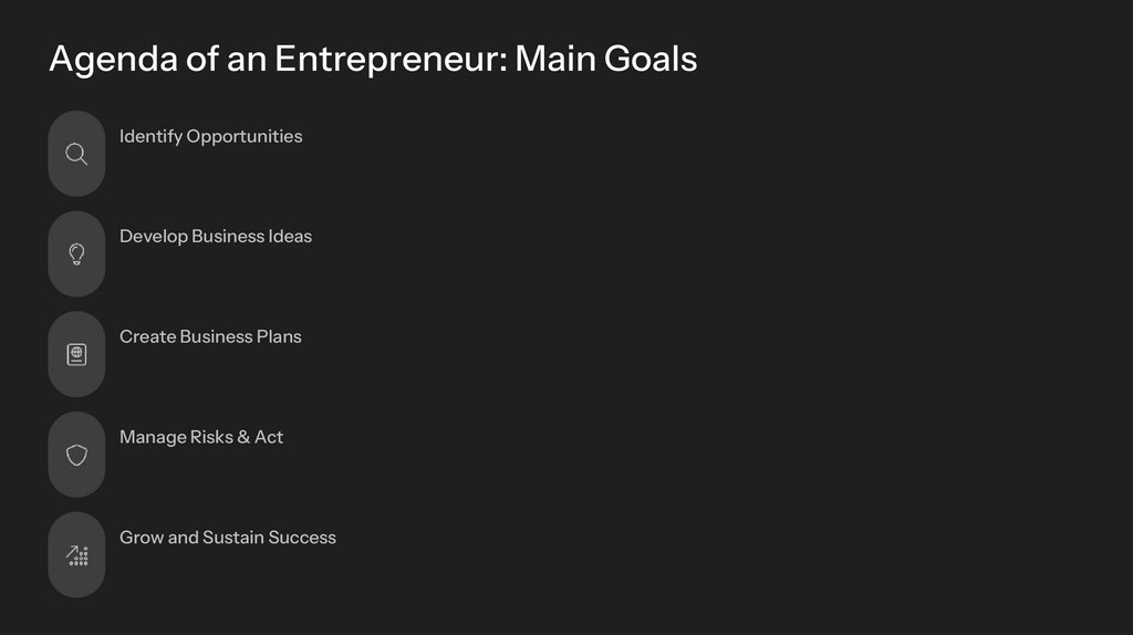 Agenda of an Entrepreneur: Main GoalsIdentify Opportunities
