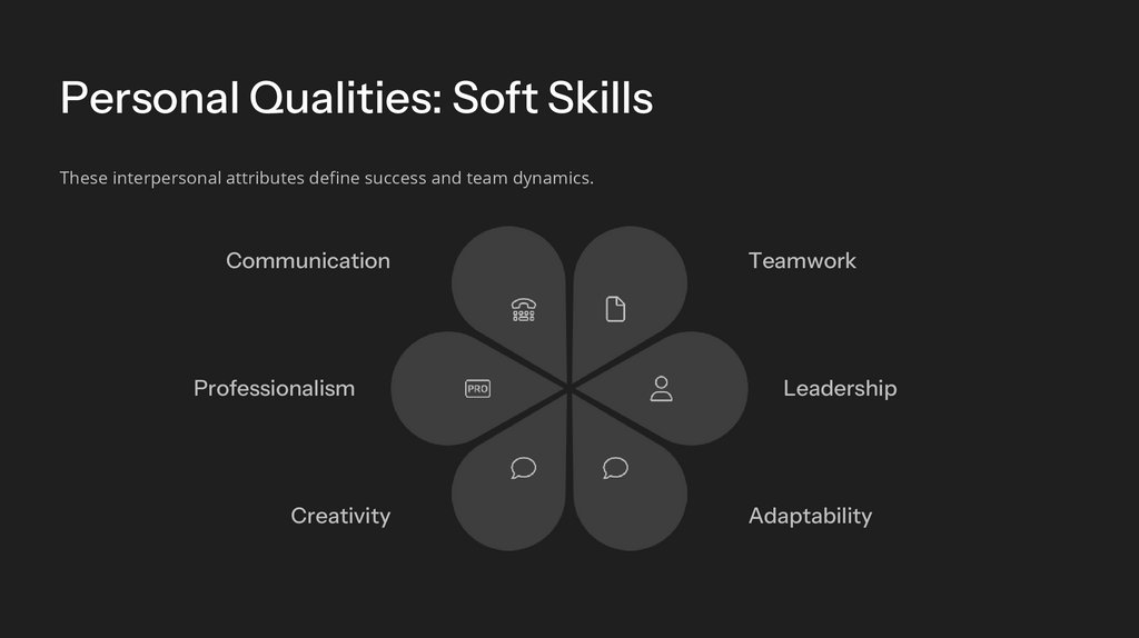 Personal Qualities: Soft SkillsThese interpersonal attributes define success and team dynamics.