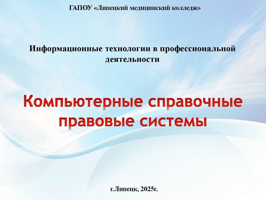 ГАПОУ «Липецкий медицинский колледж»Информационные технологии в профессиональной