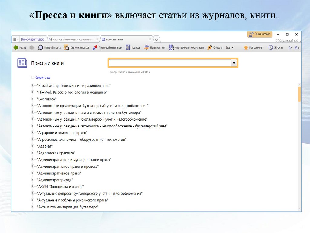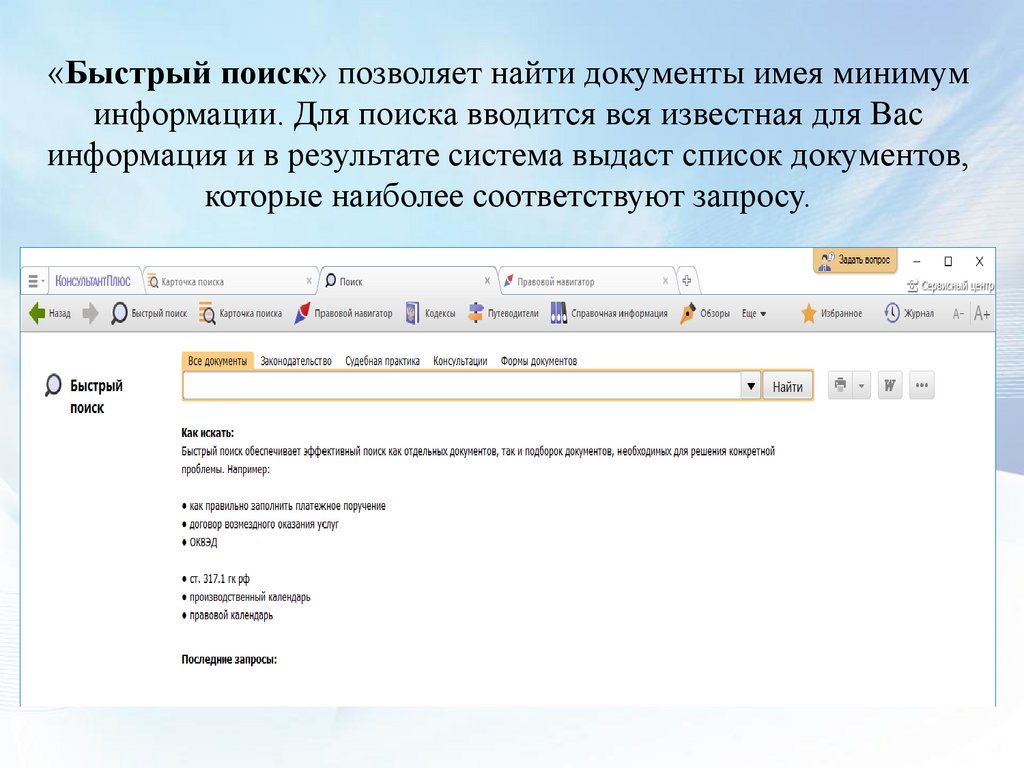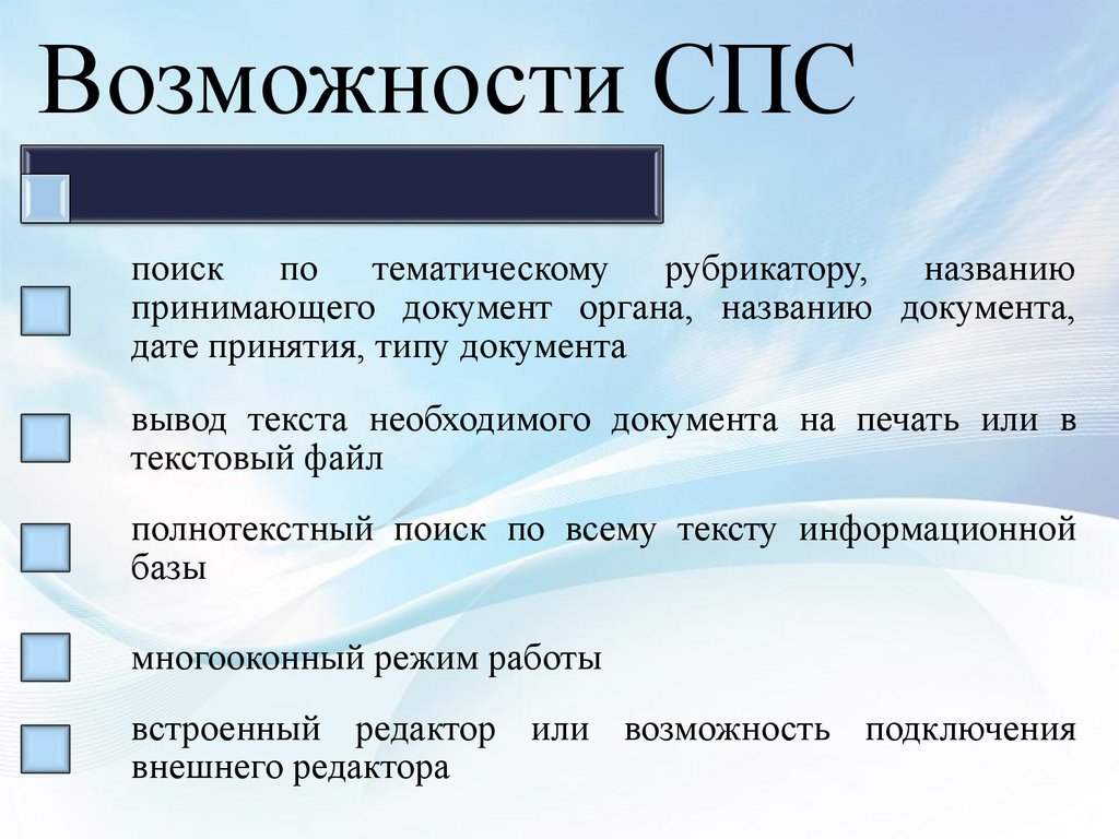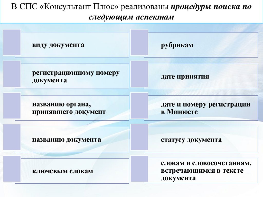Возможности СПСпоиск по тематическому рубрикатору, названию