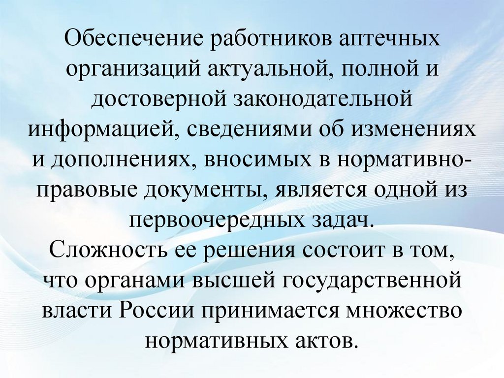 Обеспечение работников аптечныхорганизаций актуальной, полной и