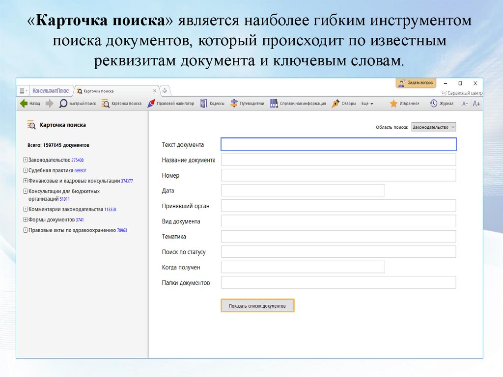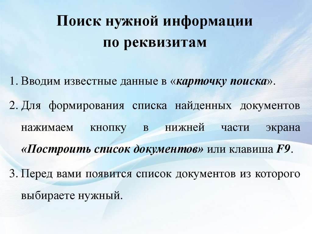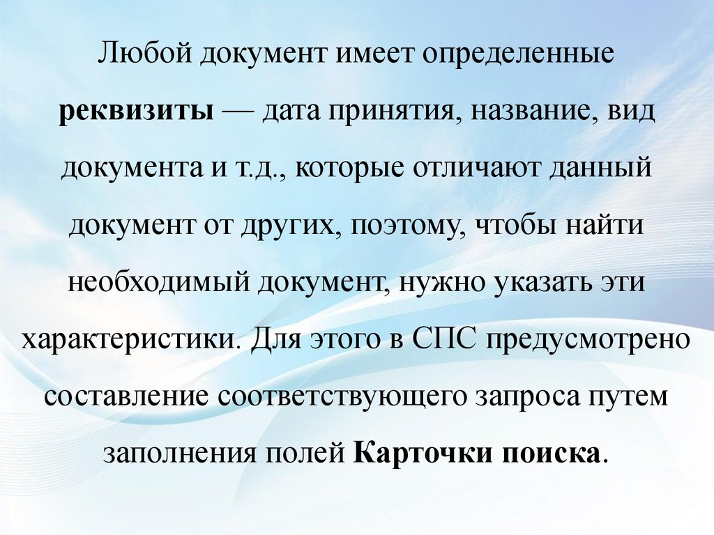Рекомендации по поиску документов1. При заполнении Карточки поиска старайтесь заполнять