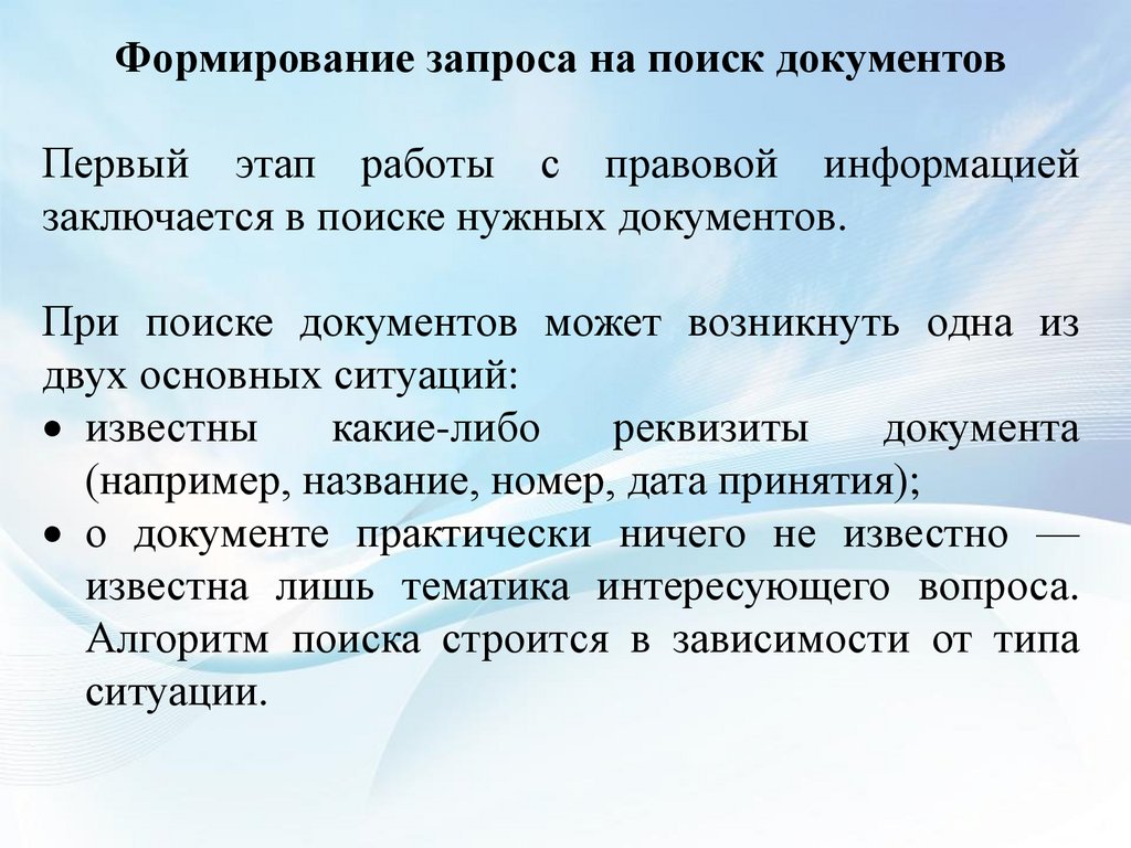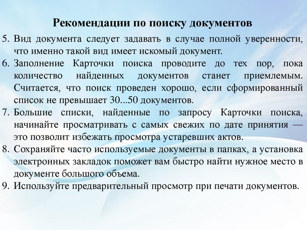 Рекомендации по поиску документов5. Вид документа следует задавать в случае полной уверенности,