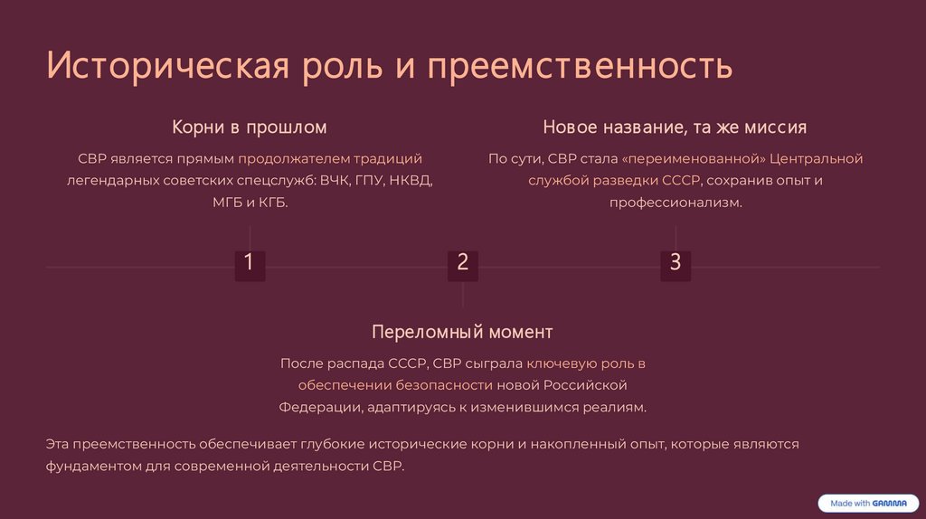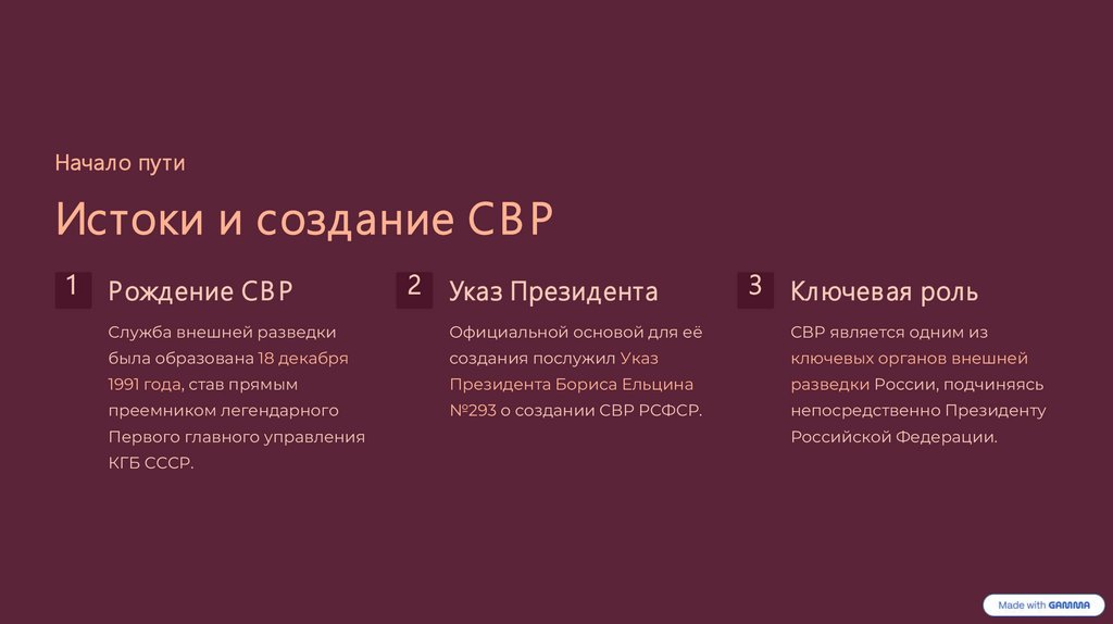фундаментом для современной деятельности СВР.