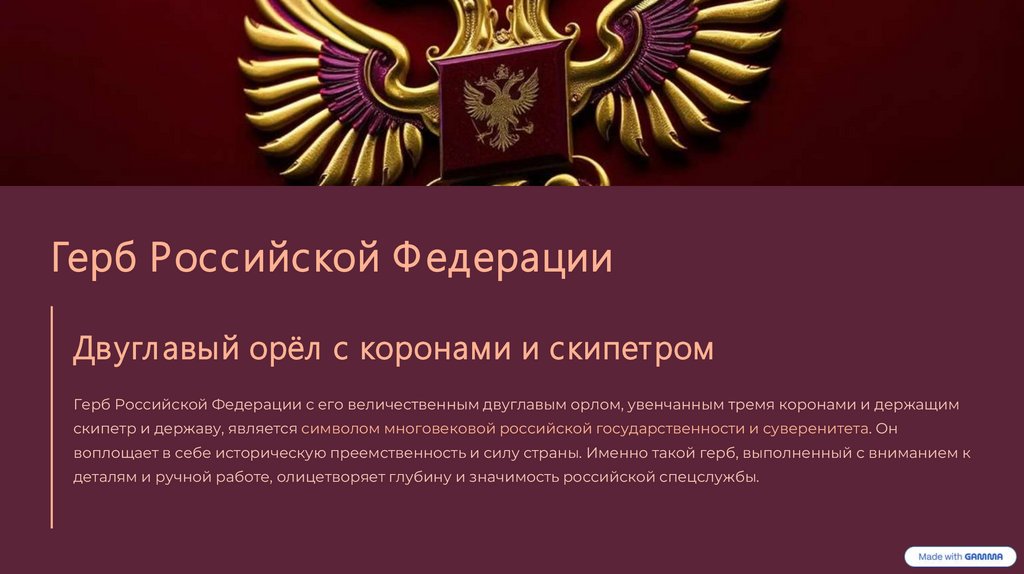 воплощает в себе историческую преемственность и силу страны. Именно такой герб, выполненный с вниманием к