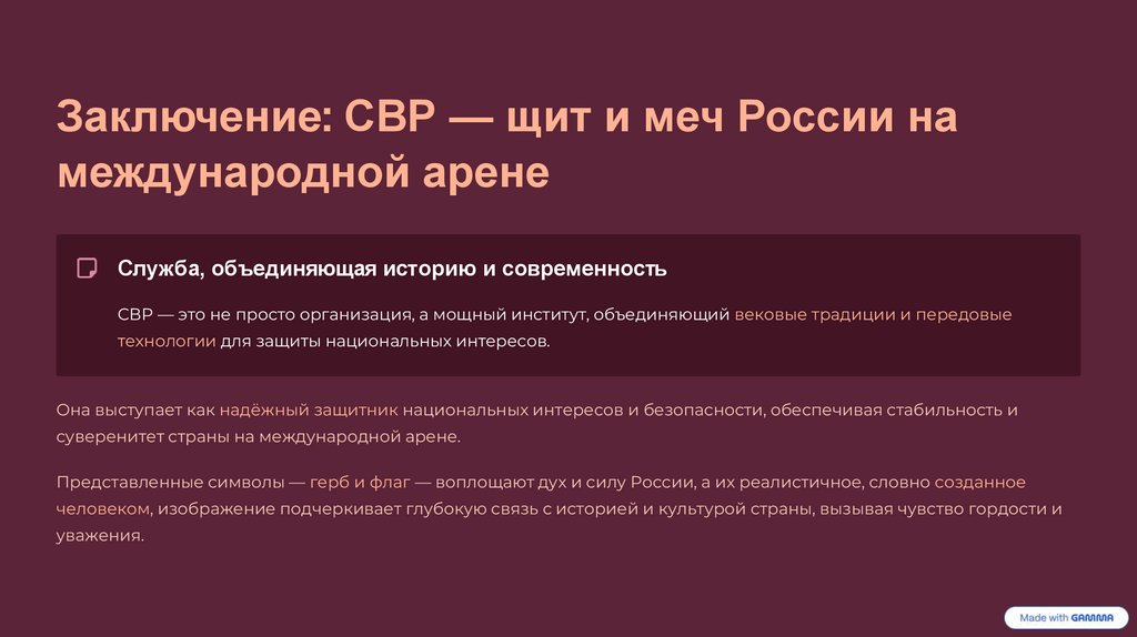 Заключение: СВР — щит и меч России намеждународной арене