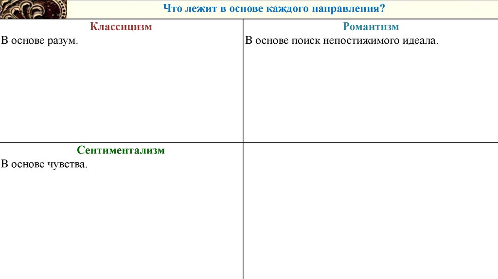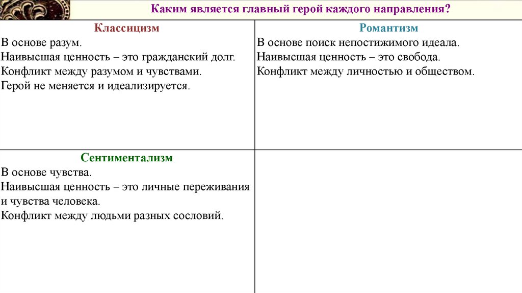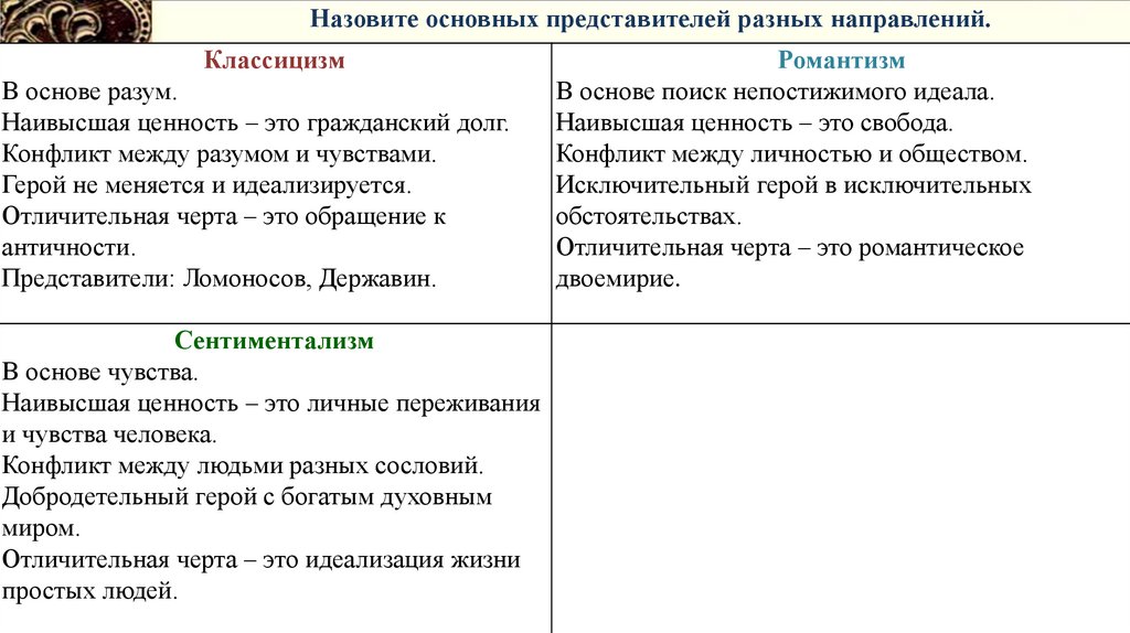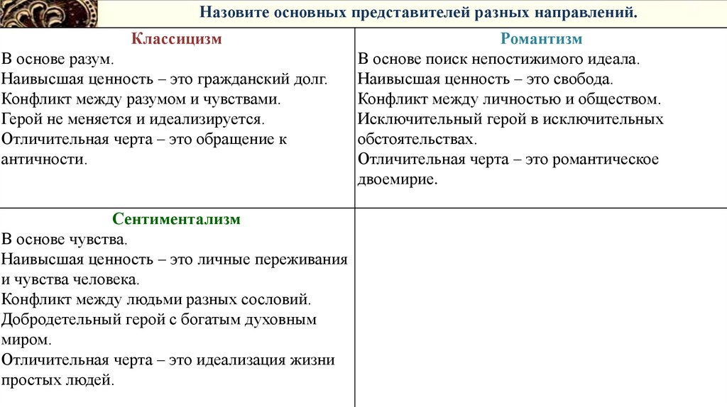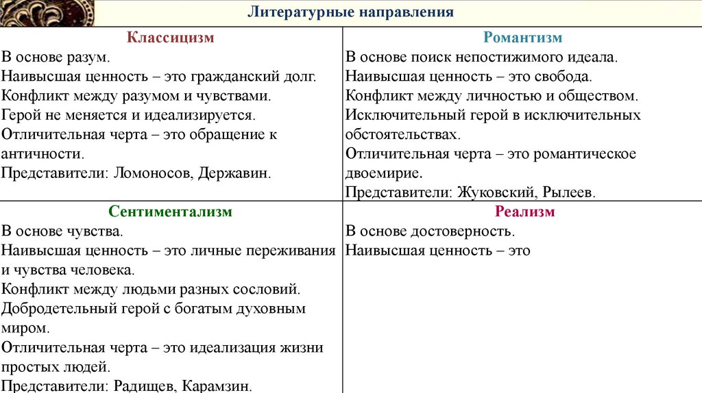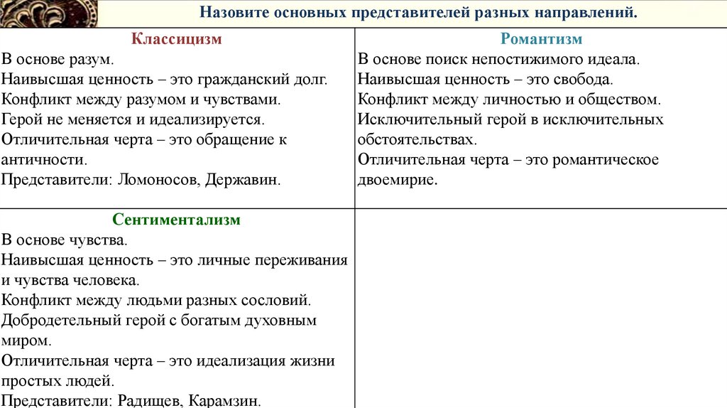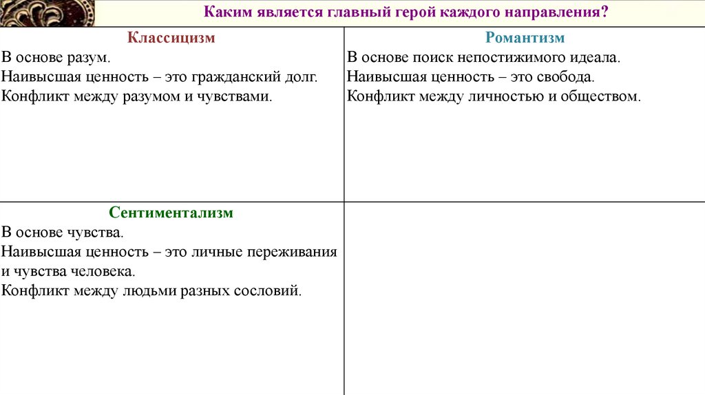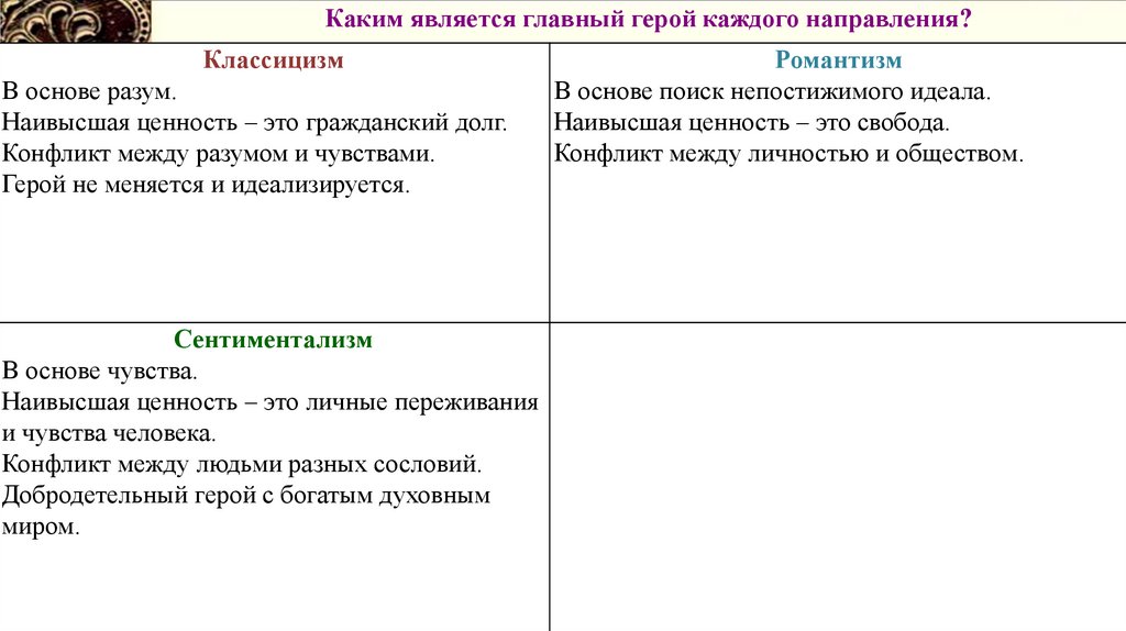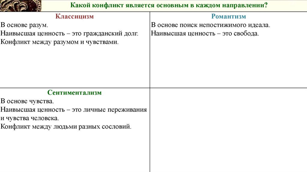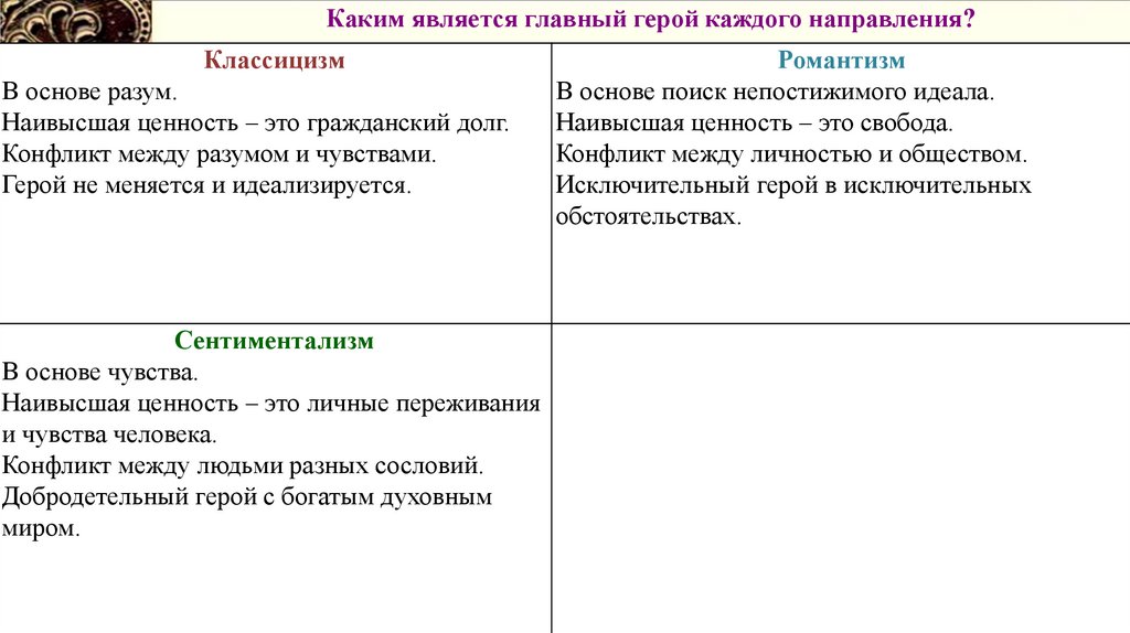 Какова наивысшая ценность в каждом направлении?Классицизм