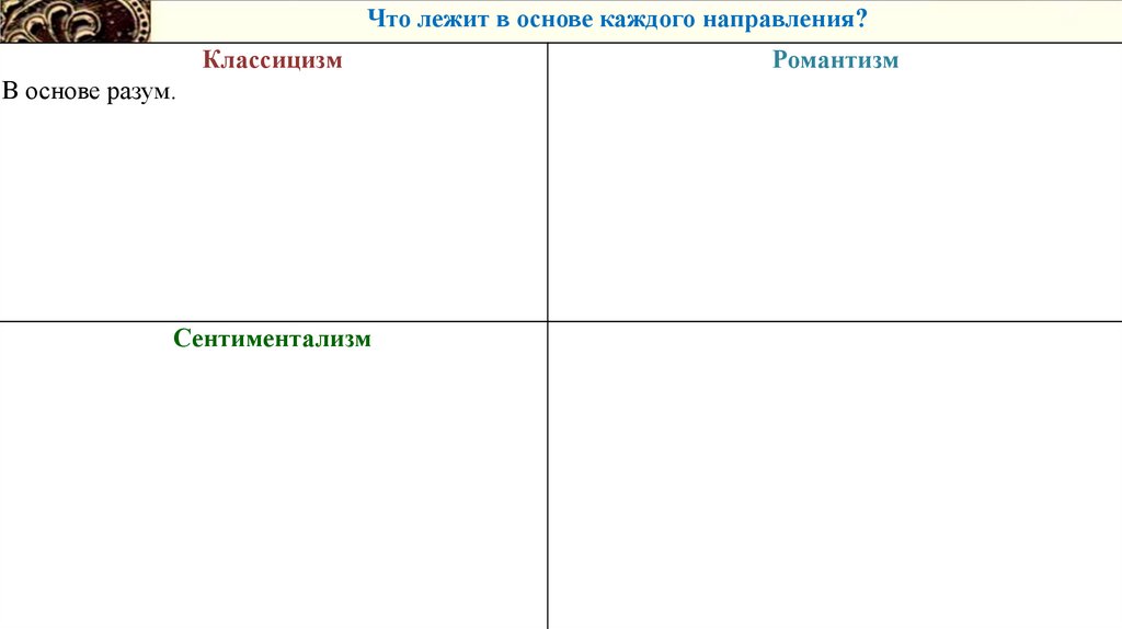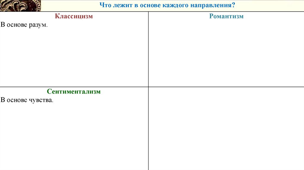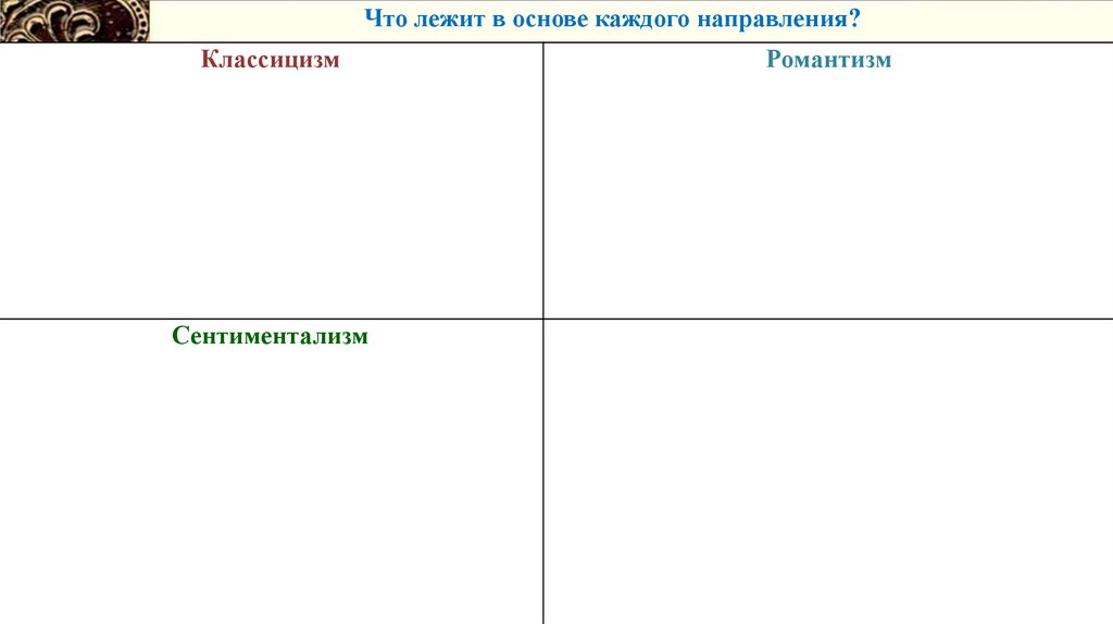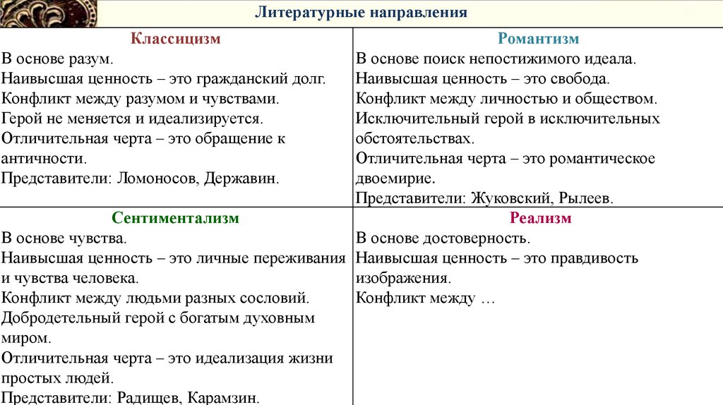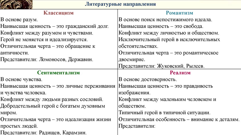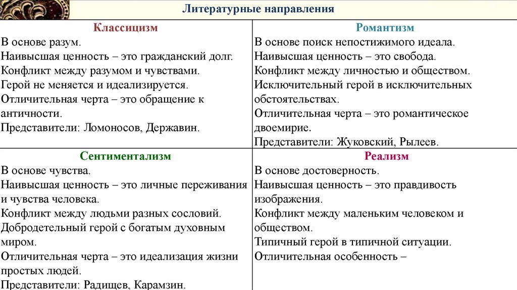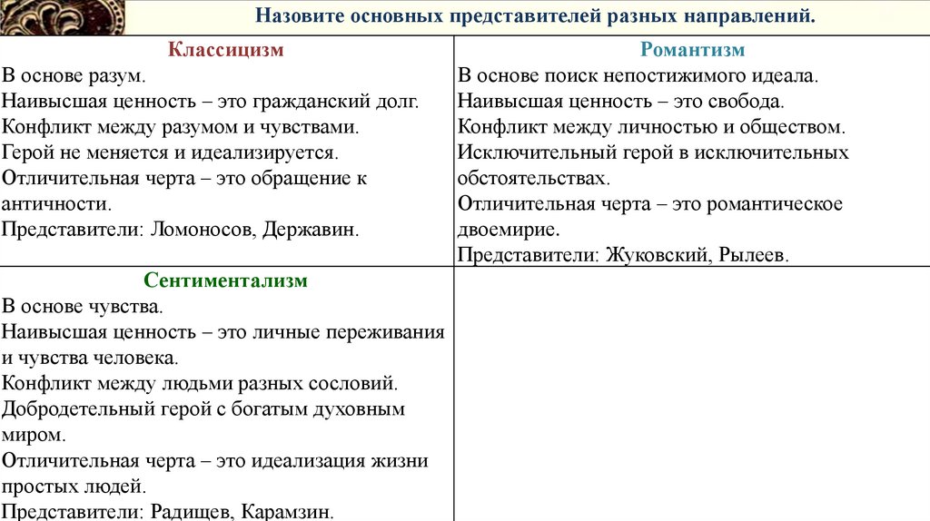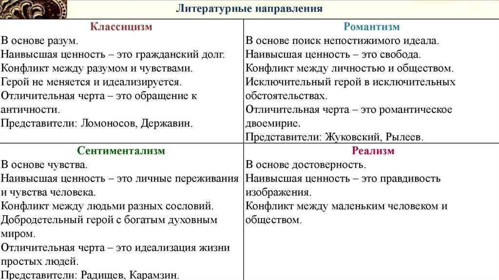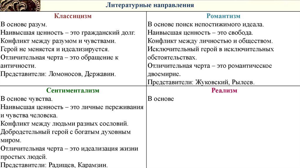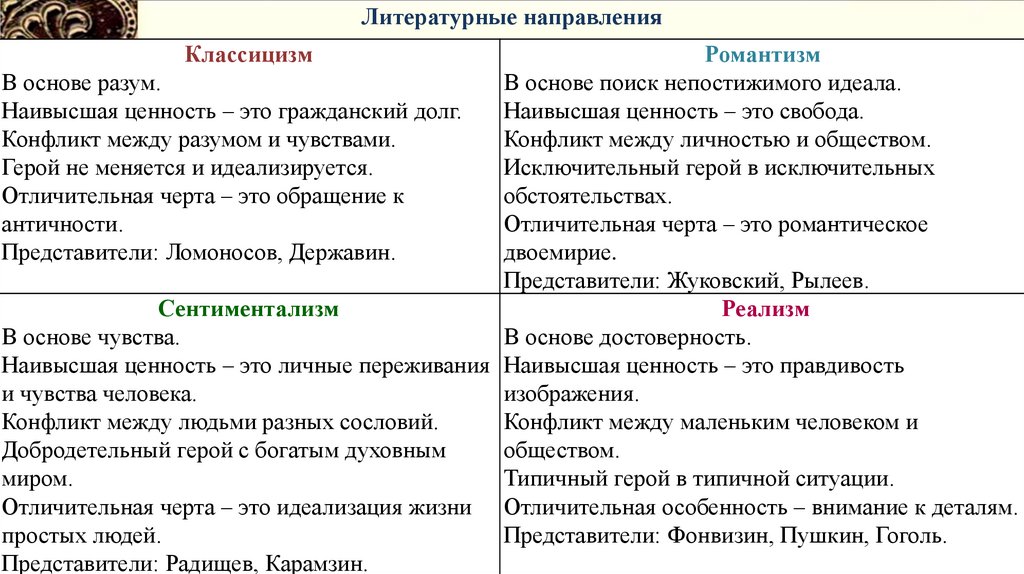 Какова наивысшая ценность в каждом направлении?Классицизм