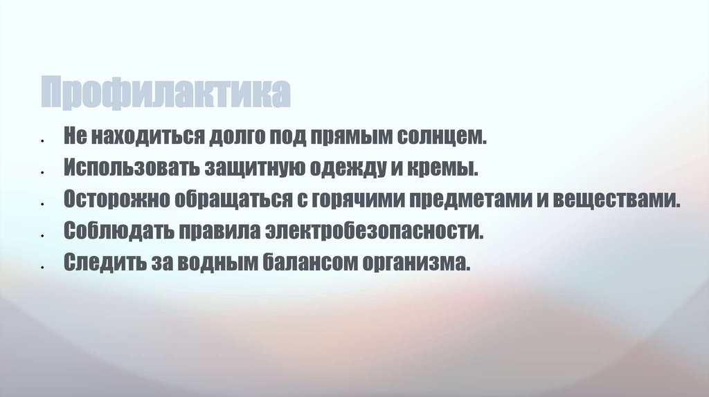 ПрофилактикаНе находиться долго под прямым солнцем.
