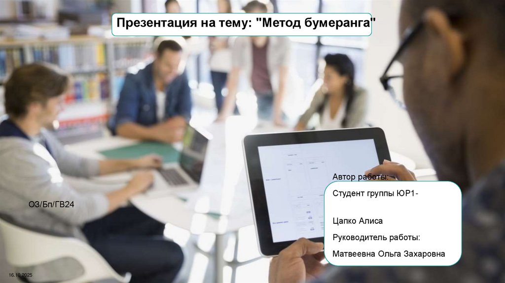 Презентация на тему: "Метод бумеранга"Автор работы: