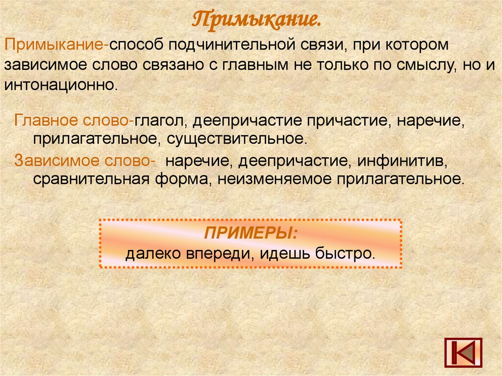 Примыкание.Примыкание-способ подчинительной связи, при котором
