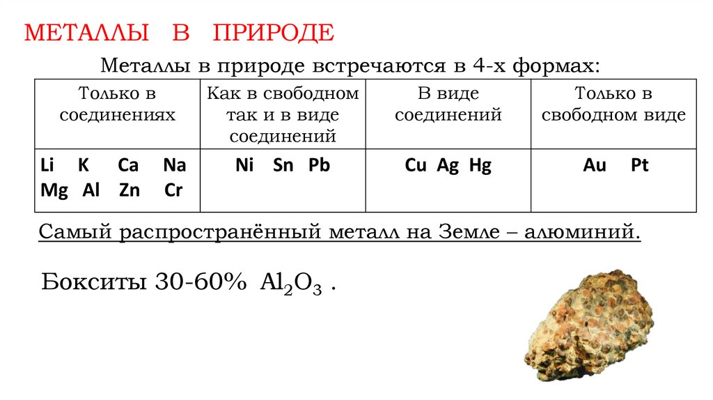МЕТАЛЛЫ В ПРИРОДЕМеталлы в природе встречаются в 4-х формах: