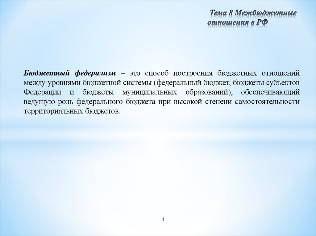 Бюджетный федерализм – это способ построения бюджетных отношениймежду уровнями бюджетной системы (федеральный бюджет, бюджеты субъектов