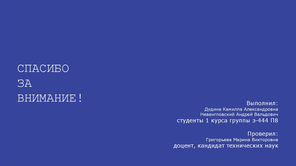 Работу выполнили: Дудина К.А, Невенгловский А.В.