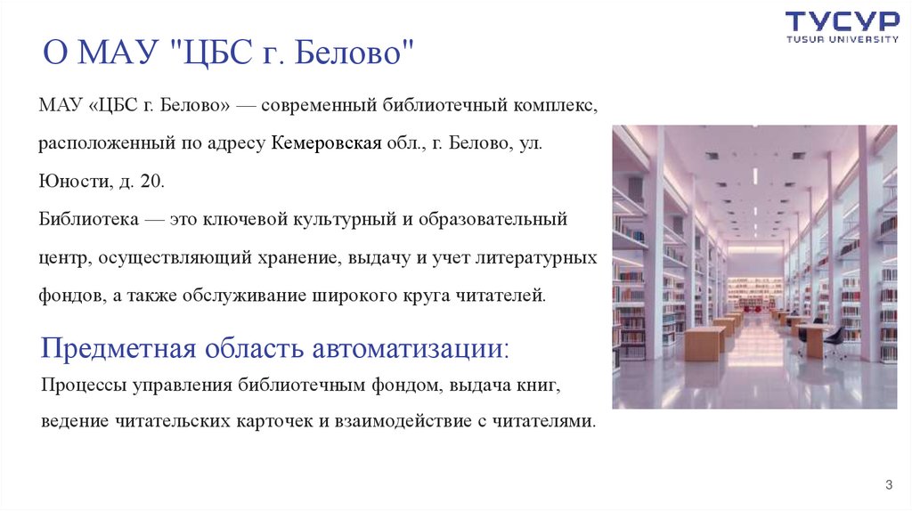 1. АВТОМАТИЗАЦИЯ БИБЛИОТЕЧНЫХ ПРОЦЕССОВ МАУ "ЦБС Г. БЕЛОВО"