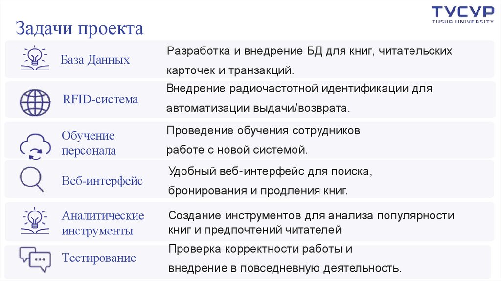Задачи проектаБаза Данных