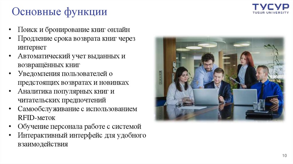 Основные функции• Поиск и бронирование книг онлайн