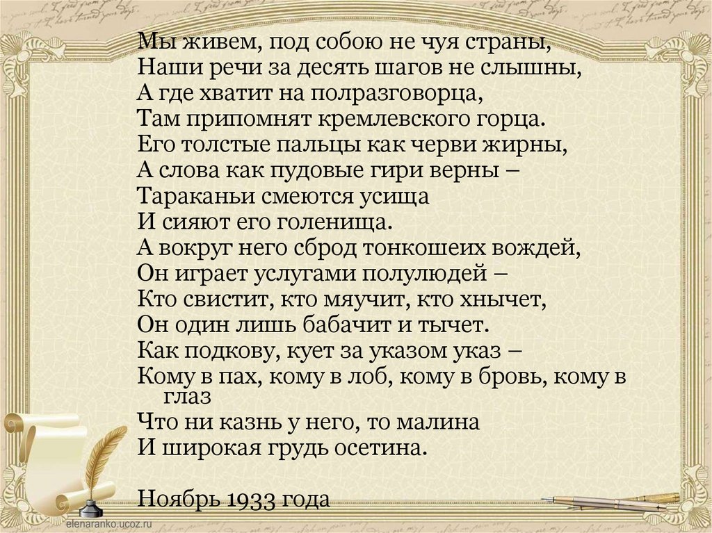 9. Я — изысканность русской медлительной речи, Предо мною другие поэты — предтечи, Я впервые открыл в этой речи уклоны,