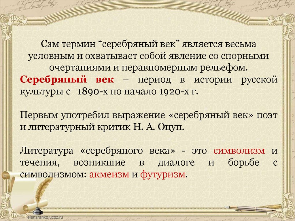 Сам термин “серебряный век” является весьмаусловным и охватывает собой явление со спорными