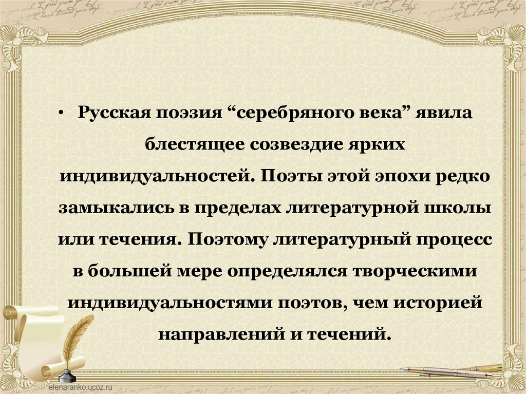 • Русская поэзия “серебряного века” явилаблестящее созвездие ярких
