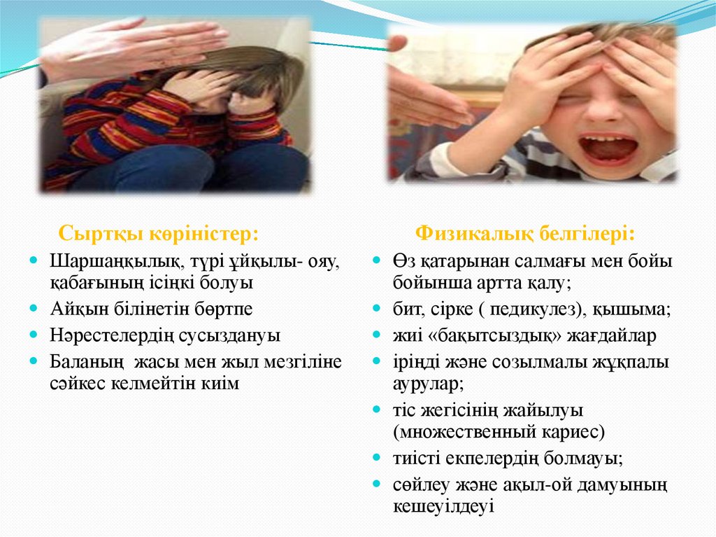Баламен қатал қарым-қатынас, қамқорлықтың болмауы және баладан