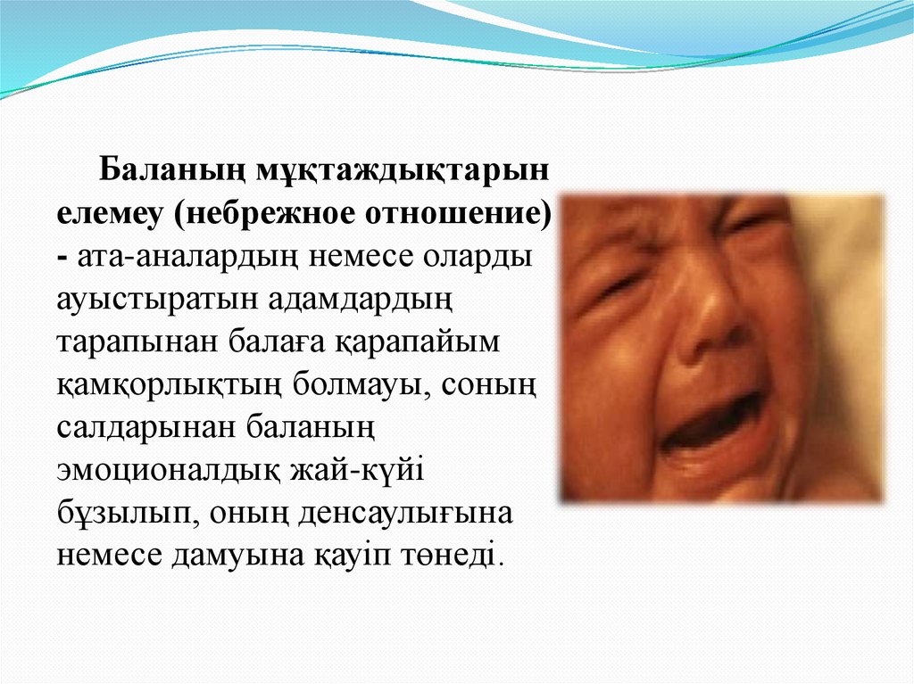 Баланың мұқтаждығын елемеу, немқұрайлылық, қадағалаусыз