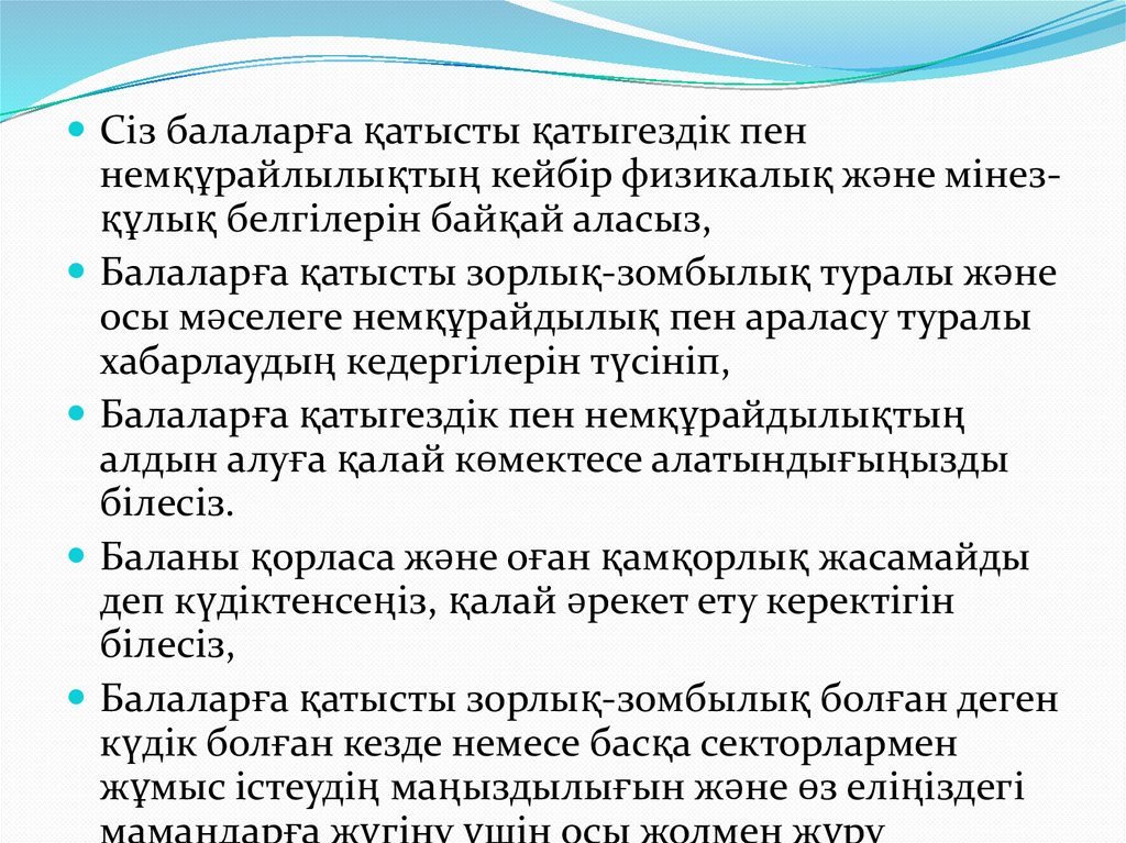 Балаларға қатыгездік пен немқұрайлылықтың қауіпқатері мен қорғаныш факторларын түсіну;