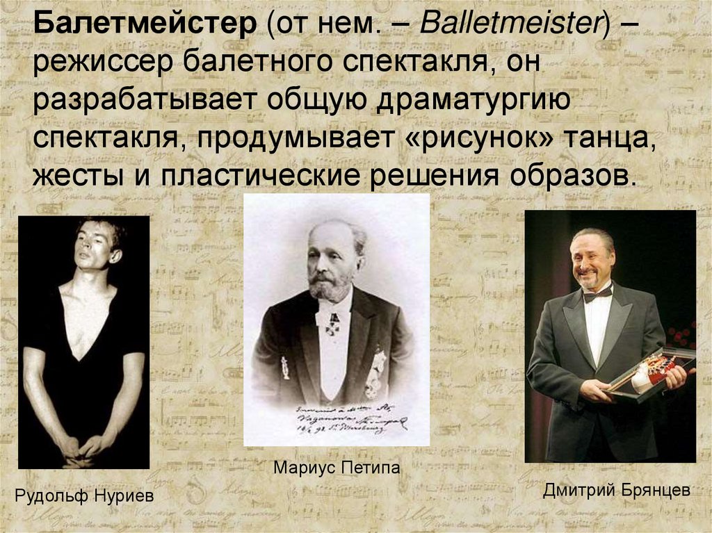 Балетмейстер (от нем. – Balletmeister) –режиссер балетного спектакля, он