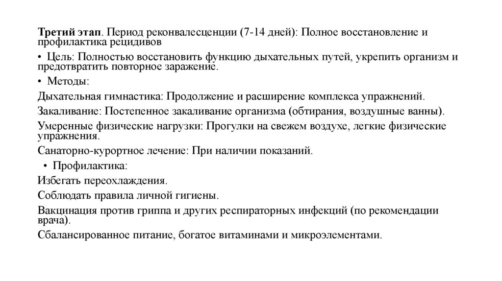 Третий этап. Период реконвалесценции (7-14 дней): Полное восстановление ипрофилактика рецидивов