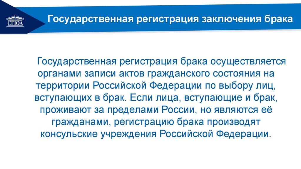 - брак должен быть юридически оформлен: зарегистрирован в органах записи актов