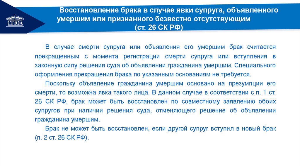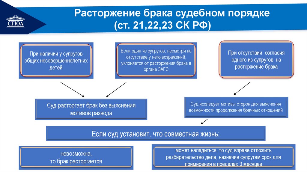 РФ). Такое решение суда называется санацией или оздоровлением брака. Вынесение