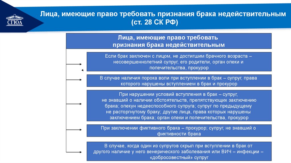 РЕМОНТ Лица, имеющие право требовать признания брака недействительным(ст. 28 СК РФ)
