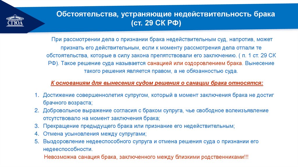 РЕМОНТОбстоятельства, устраняющие недействительность брака