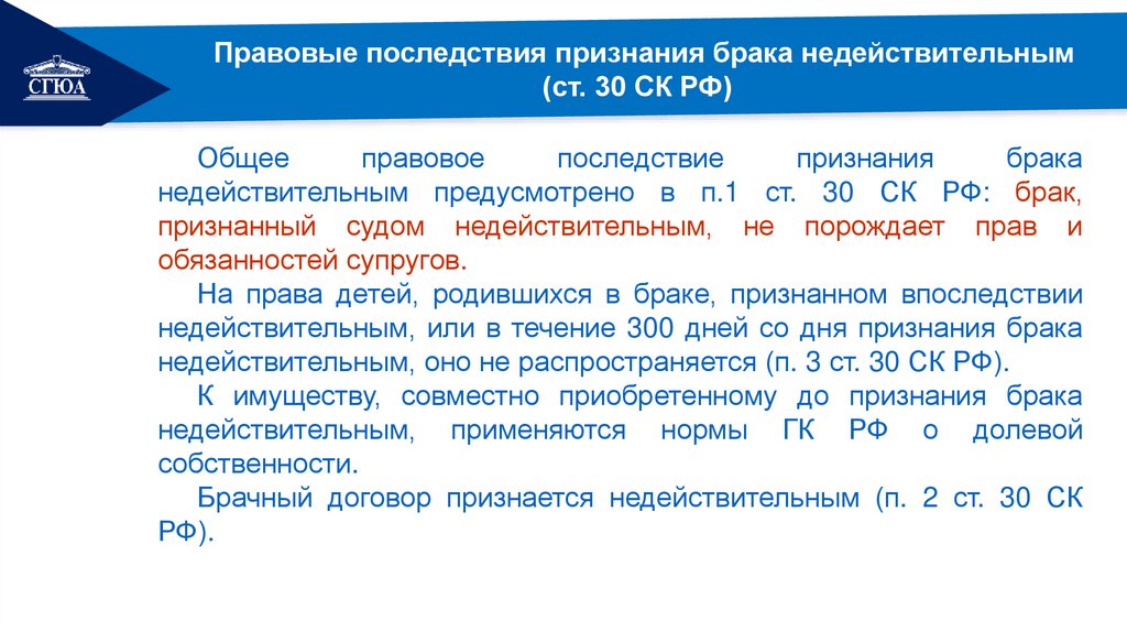 Брачный договор признается недействительным (п. 2 ст. 30 СК