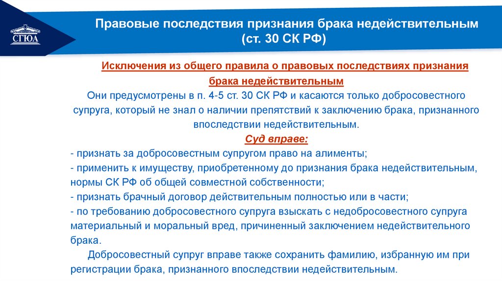 недействительным, оно не распространяется (п. 3 ст. 30 СК РФ).