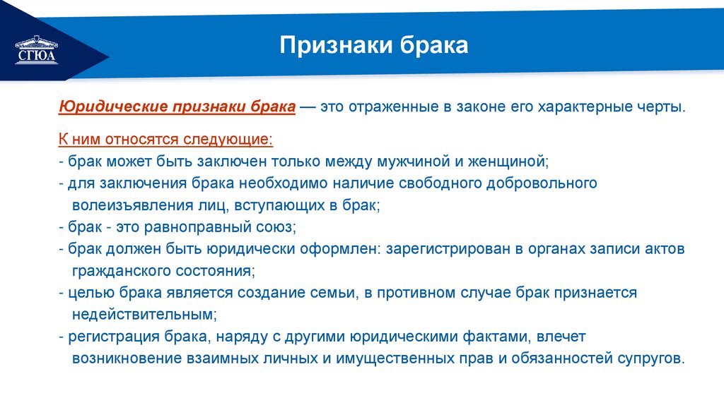 Юридические признаки брака — это отраженные в законе его характерные черты.