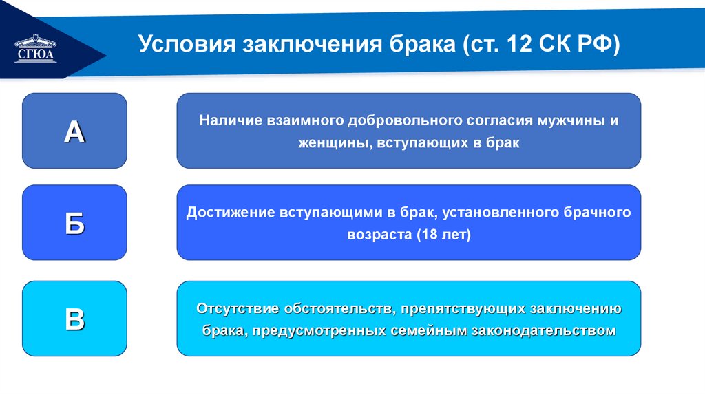РЕМОНТУсловия заключения брака (ст. 12 СК РФ)