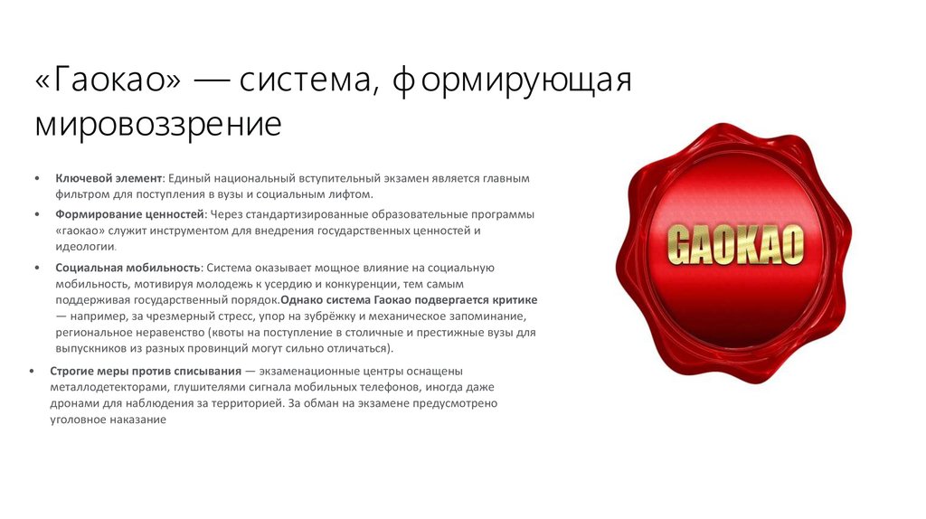 «гаокао» служит инструментом для внедрения государственных ценностей и
