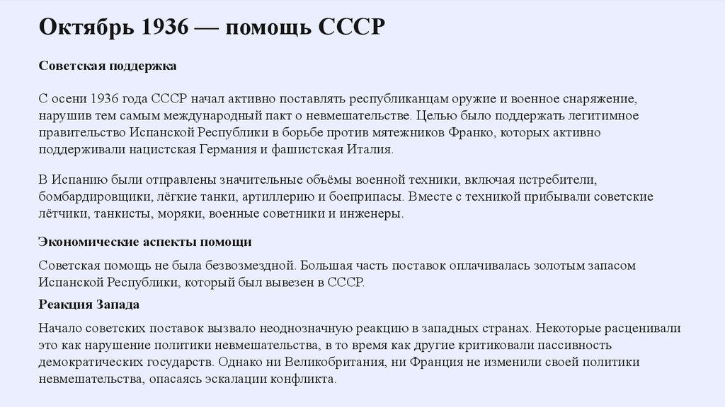 Октябрь 1936 — помощь СССРСоветская поддержка