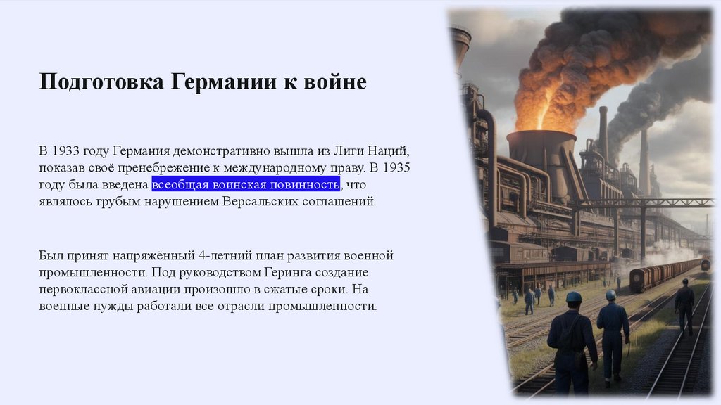 Подготовка Германии к войнеВ 1933 году Германия демонстративно вышла из Лиги Наций,