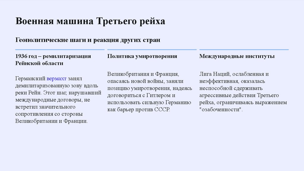 Военная машина Третьего рейхаГеополитические шаги и реакция других стран