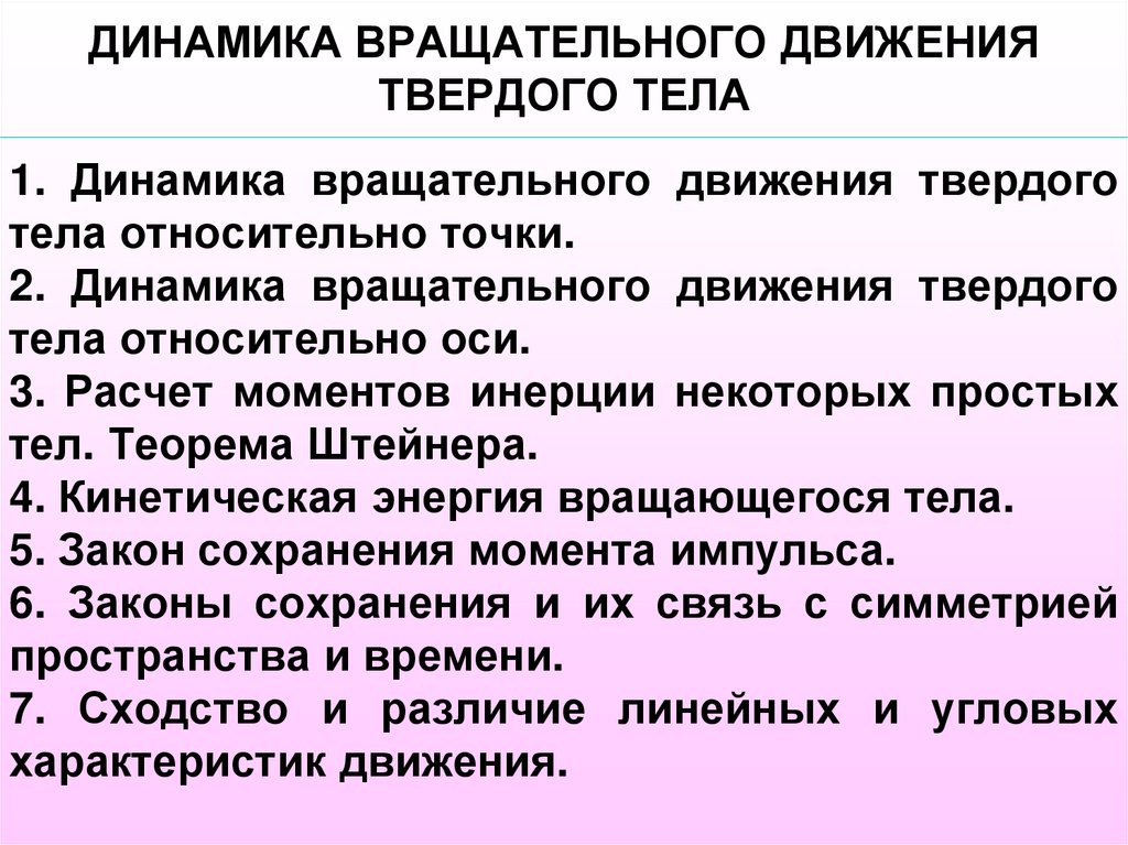 1. Динамика вращательного движения твердоготела относительно точки.