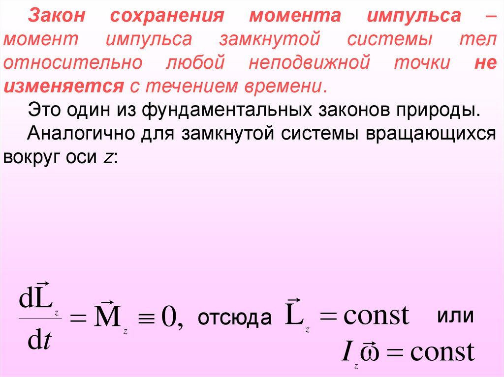 Момент импульса системы L является основной