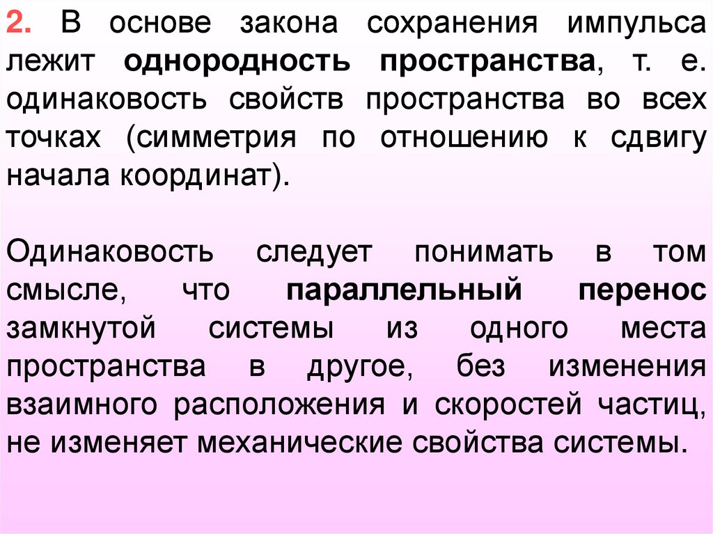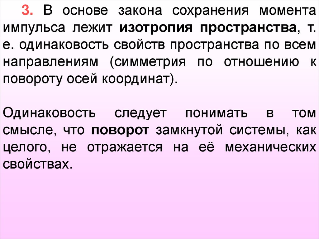 3. В основе закона сохранения моментаимпульса лежит изотропия пространства, т.