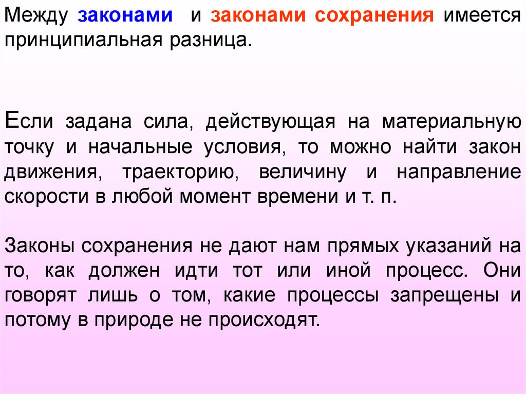 Между законами и законами сохранения имеетсяпринципиальная разница.