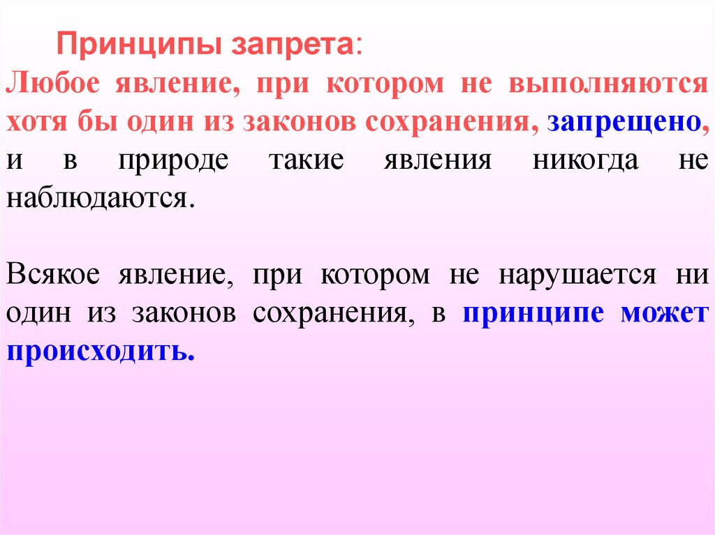 Принципы запрета:Любое явление, при котором не выполняются